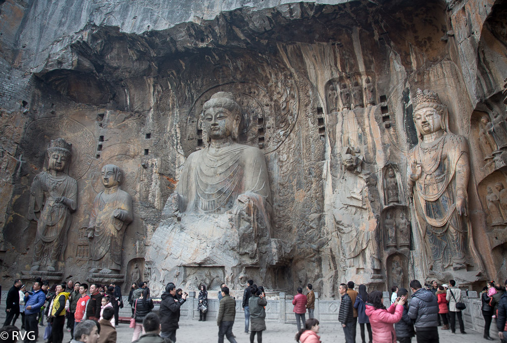 En parlant de visite c’était un voyage organisé avec déplacement en autocar sur 2 sites très connu dans la région… C’est donc ici que nous visitons le monastère Shaolin 少林寺 temple du Kung-fu 功夫. Un très beau temple. Dans l’après midi nous allons aux très impressionnantes grottes de Longmen 龍門石窟, au bord de la rivière Yi (He) 伊江. Cette escapade à commencé sous la neige grise (un peu pollué) et finis au grottes sous le soleil. Très intéressante journée mais ici aussi il y a beaucoup de monde…